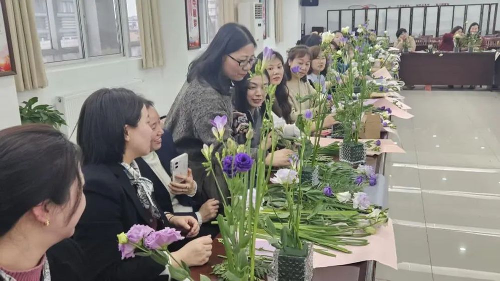 參與活動的女工們紛紛動手實踐,現(xiàn)場氣氛熱烈。葉子老師穿梭于學(xué)員之間,耐心指導(dǎo),幫助大家調(diào)整作品。活動結(jié)束時,每位學(xué)員都完成了自己的插花作品,現(xiàn)場花香四溢,充滿了藝術(shù)氣息。