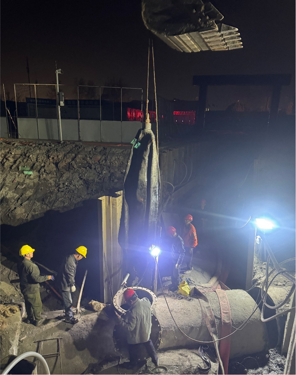 深夜,六圩污水處理廠生產(chǎn)運(yùn)行人員嚴(yán)陣以待,以嚴(yán)謹(jǐn)負(fù)責(zé)的態(tài)度緊盯生產(chǎn)數(shù)據(jù),不間斷開(kāi)展設(shè)備巡檢。施工現(xiàn)場(chǎng)燈火通明,作業(yè)人員輪班值守,爭(zhēng)搶每一分鐘,技術(shù)骨干全程駐場(chǎng),針對(duì)突發(fā)問(wèn)題快速研判,確保工序無(wú)縫銜接。在現(xiàn)場(chǎng)負(fù)責(zé)人的統(tǒng)一調(diào)度下,各參建單位緊密配合,高效完成了導(dǎo)流泵組安裝、原管道封堵及新管道切換等關(guān)鍵工序,成功將日均14萬(wàn)噸尾水順利排放,實(shí)現(xiàn)新舊管道“零延時(shí)”銜接,有力保障了區(qū)域污水處理系統(tǒng)的平穩(wěn)運(yùn)行。