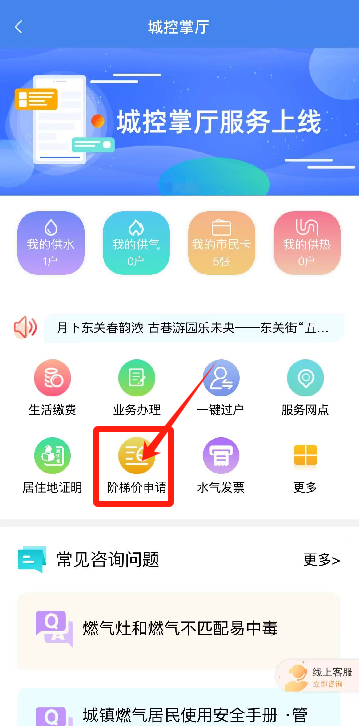 打開我的揚州APP,在熱門專欄的“城控掌廳”,選擇“水氣階梯申請”。