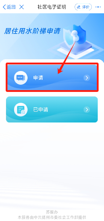 選擇“居住用水/氣階梯申請”模塊,點擊申請。(此處以居民用水為例)