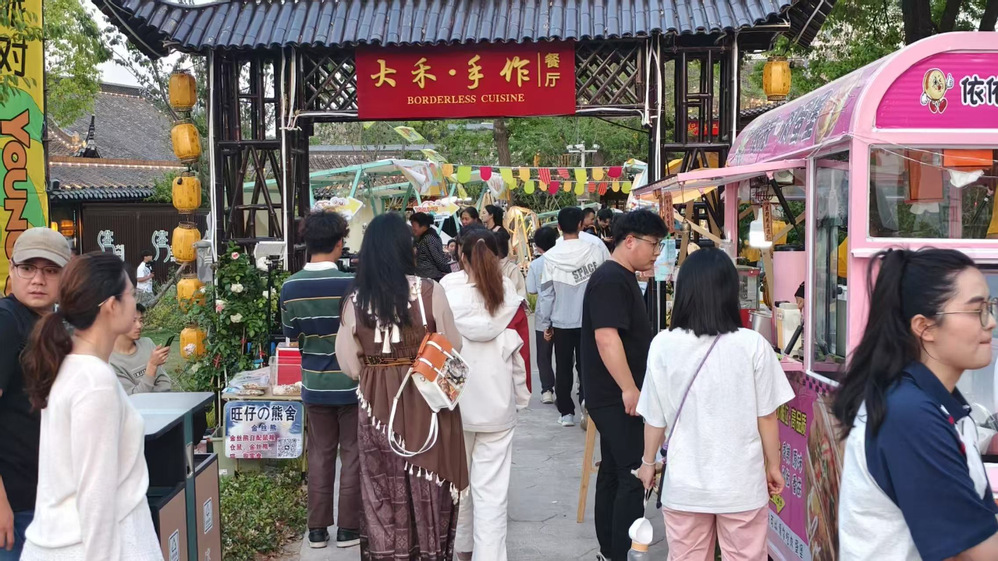 市集內(nèi)匯聚南北風味小吃,烤肉在炭火上跳躍,肉香裹挾著孜然的辛香直鉆鼻腔;琥珀色的精釀啤酒泛著綿密泡沫,麥芽香與果香交織,瞬間激活味蕾。