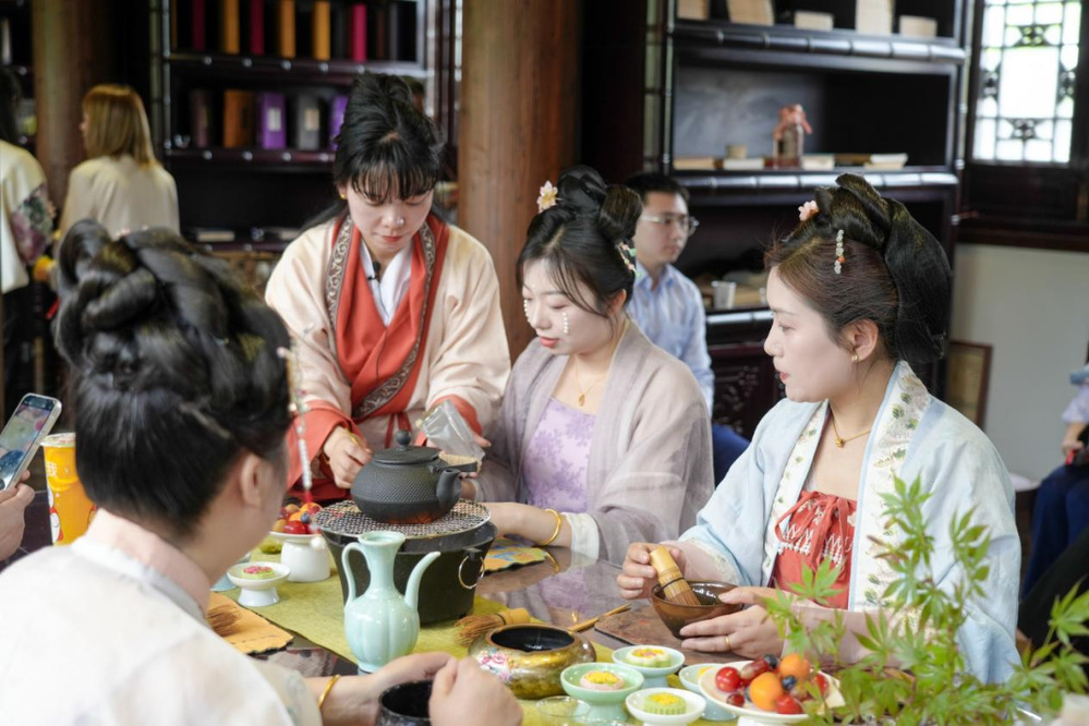 從謝馥春香粉店旁的“淮揚(yáng)早茶體驗(yàn)區(qū)”到街尾的“老字號(hào)美食長(zhǎng)廊”,街區(qū)串聯(lián)起揚(yáng)州美食文化精髓。三和四美醬園現(xiàn)場(chǎng)熬制“櫻花腐乳”,將傳統(tǒng)工藝與春日風(fēng)物融合;揚(yáng)大酸奶、漢森熊啤酒等網(wǎng)紅美食與霸王茶姬國(guó)風(fēng)茶飲形成混搭風(fēng)潮,滿足年輕群體的多元需求。夜經(jīng)濟(jì)版圖持續(xù)拓展:芍藥園子書(shū)場(chǎng)評(píng)話聲聲入耳,長(zhǎng)樂(lè)鹽商宴再現(xiàn)鹽商雅集盛景,形成日賞非遺、夜享雅韻的全時(shí)段體驗(yàn)閉環(huán)。數(shù)字科技為古街注入新活力,街區(qū)東門城樓引入VR全景漫游、AI互動(dòng)等前沿技術(shù),在東關(guān)城樓打造《創(chuàng)世·山海經(jīng)》沉浸式數(shù)字文化展,吸引約3000名游客穿越上古神話世界,虛實(shí)相生的光影藝術(shù)讓傳統(tǒng)文化煥發(fā)時(shí)尚魅力。