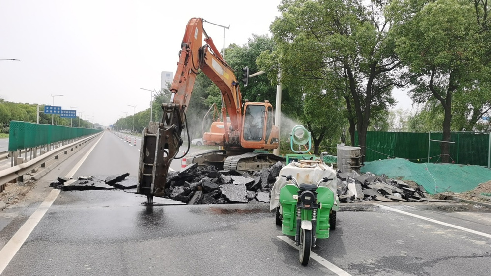 施工現(xiàn)場劃分為南北兩階段,采用“日間備料、夜間突擊”模式,履帶式破碎機對原路面分層切割破除后,同步啟動鋼板樁支護,施工人員輪班施工作業(yè)。面對溝槽深度近4米、毗鄰通行車道等風險,安全員全程旁站監(jiān)督,每30分鐘巡查支護結構穩(wěn)定性。