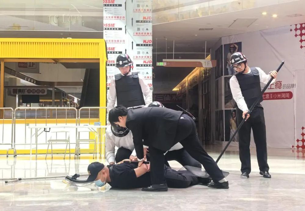 模擬場景中,一名“暴徒”持械闖入商場,安保指揮中心迅速啟動應(yīng)急預(yù)案,引導(dǎo)顧客疏散,應(yīng)急處置組運用專業(yè)戰(zhàn)術(shù)技巧成功控制“暴徒”。整個演習(xí)過程緊張有序,所有參演人員反應(yīng)迅速、行動果斷,有效檢驗了團隊快速響應(yīng)和協(xié)同作戰(zhàn)能力。