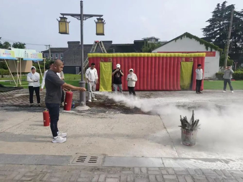 培訓(xùn)結(jié)束后,在小秦淮街區(qū)現(xiàn)場開展了一場緊張有序的應(yīng)急逃生及消防演練。隨著警報聲響起,參與培訓(xùn)的員工在工作人員的引導(dǎo)下,捂住口鼻,彎腰低姿,沿著預(yù)定逃生路線快速、有序地撤離到安全區(qū)域。隨后,工作人員通過理論講解與現(xiàn)場示范相結(jié)合的方式,詳細指導(dǎo)員工正確使用滅火器。大家踴躍參與實踐操作,在“手把手”教學(xué)中掌握了滅火器“提、拔、握、壓”的使用要領(lǐng),切實提升了應(yīng)對突發(fā)火災(zāi)的能力。