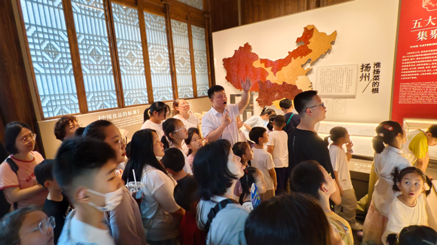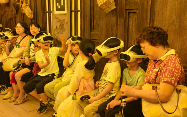 活動(dòng)中,孩子們首先參觀了淮揚(yáng)菜博物館,深入了解淮揚(yáng)菜的歷史文化與精湛技藝。隨后,大家走進(jìn)“唐朝詭事錄”VR劇場(chǎng),戴上VR眼鏡后,孩子們跟隨劇情線索穿梭于大唐盛景之中,在虛實(shí)交融的沉浸式體驗(yàn)里與古人展開“跨時(shí)空對(duì)話”?;顒?dòng)尾聲,親子家庭相聚對(duì)影小酒館,共同動(dòng)手制作傳統(tǒng)竹編扇,感受手工技藝蘊(yùn)含的匠心之美。