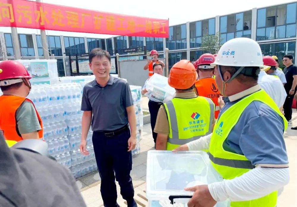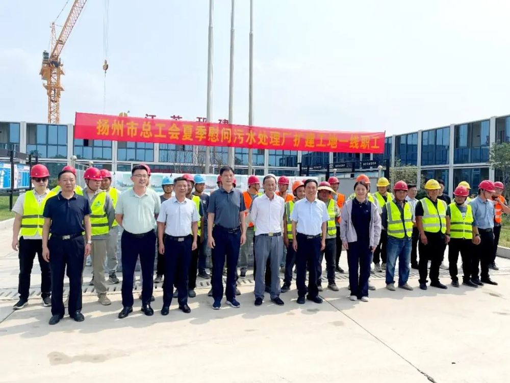 烈日炎炎,高溫來襲。為切實做好防暑降溫工作,保障一線人員身體健康權益,7月15日下午,揚州市總工會副主席孫凌雷帶隊組成“送清涼”慰問組,來到六圩污水處理廠擴建工程現(xiàn)場,為奮戰(zhàn)在高溫一線的工作人員送去防暑物資與深切關懷,讓“清涼”沁潤心田。