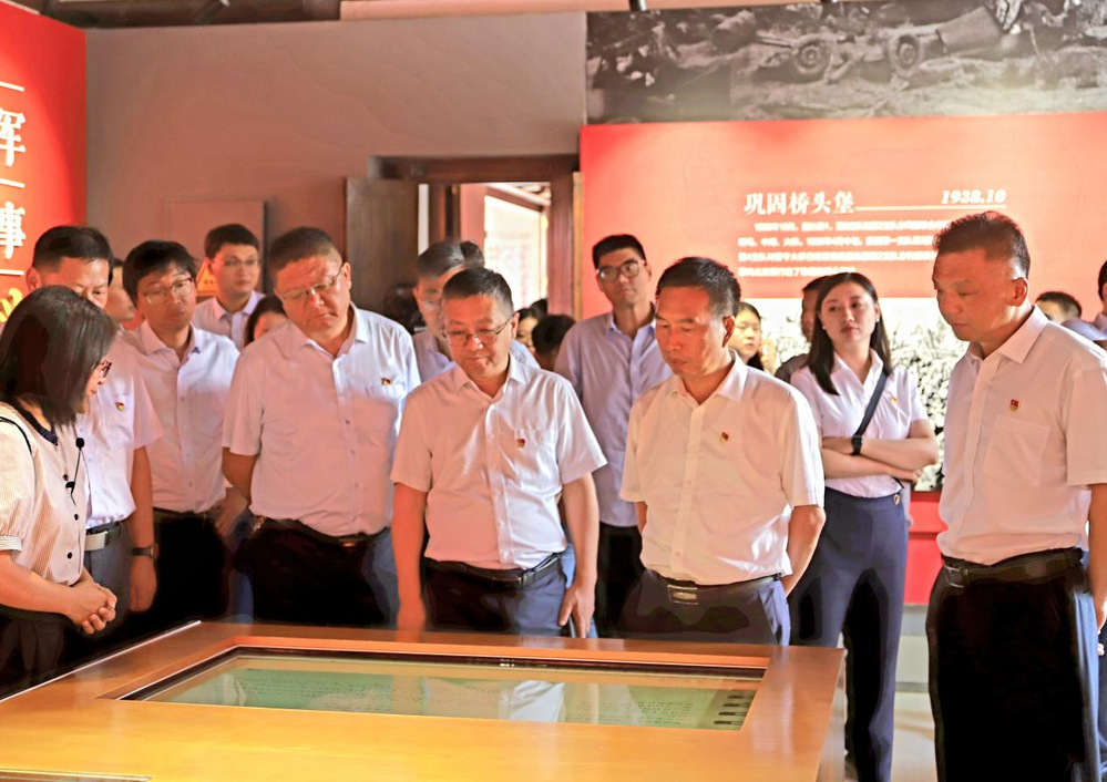 紀(jì)念館內(nèi),泛黃的史料呈現(xiàn)著斑駁的抗戰(zhàn)圖景。跟隨講解員的細(xì)致講述,大家詳細(xì)了解了陳毅、粟裕率領(lǐng)新四軍在此建立蘇北指揮部的歷史脈絡(luò),系統(tǒng)學(xué)習(xí)了新四軍在蘇北抗戰(zhàn)歷程與革命事跡。觀過(guò)程中,黨員們不時(shí)駐足于作戰(zhàn)地圖前,凝視著戰(zhàn)士用過(guò)的槍械、村民支援的布鞋,在以少勝多、軍民同心的史料紀(jì)實(shí)中,深切感悟“聽(tīng)黨指揮、敢打必勝”的鐵軍精神。
