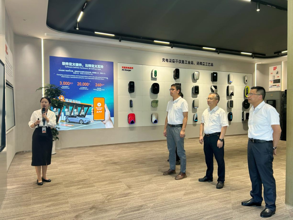 在常州虛擬電廠運(yùn)營(yíng)商萬(wàn)幫數(shù)字能源公司,調(diào)研組現(xiàn)場(chǎng)觀摩了虛擬電廠實(shí)際運(yùn)行情況,重點(diǎn)交流了車網(wǎng)互動(dòng)(V2G)技術(shù)、智慧能源管理平臺(tái)以及充電設(shè)施負(fù)荷聚合參與需求響應(yīng)等實(shí)踐經(jīng)驗(yàn),并實(shí)地查看了星星充電光儲(chǔ)充綜合能源站。
