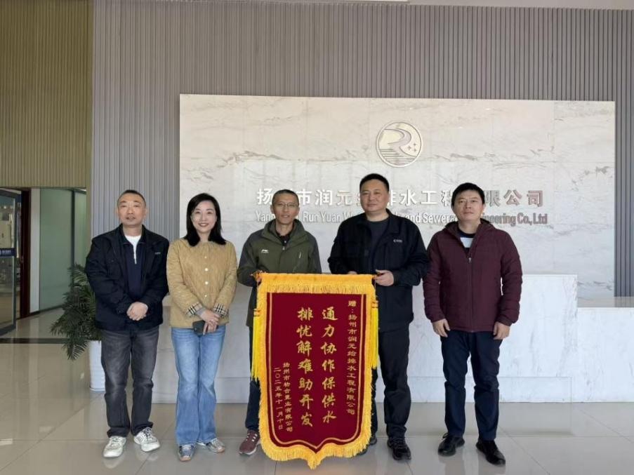 11月19日,揚(yáng)州市物合置業(yè)有限公司將一面繡有“通力協(xié)作保供水,排憂(yōu)解難助開(kāi)發(fā)”的錦旗送到長(zhǎng)江水務(wù)潤(rùn)元公司工作人員手中,對(duì)潤(rùn)元公司高效、優(yōu)質(zhì)、便捷、暖心的服務(wù)表示衷心感謝和認(rèn)可。